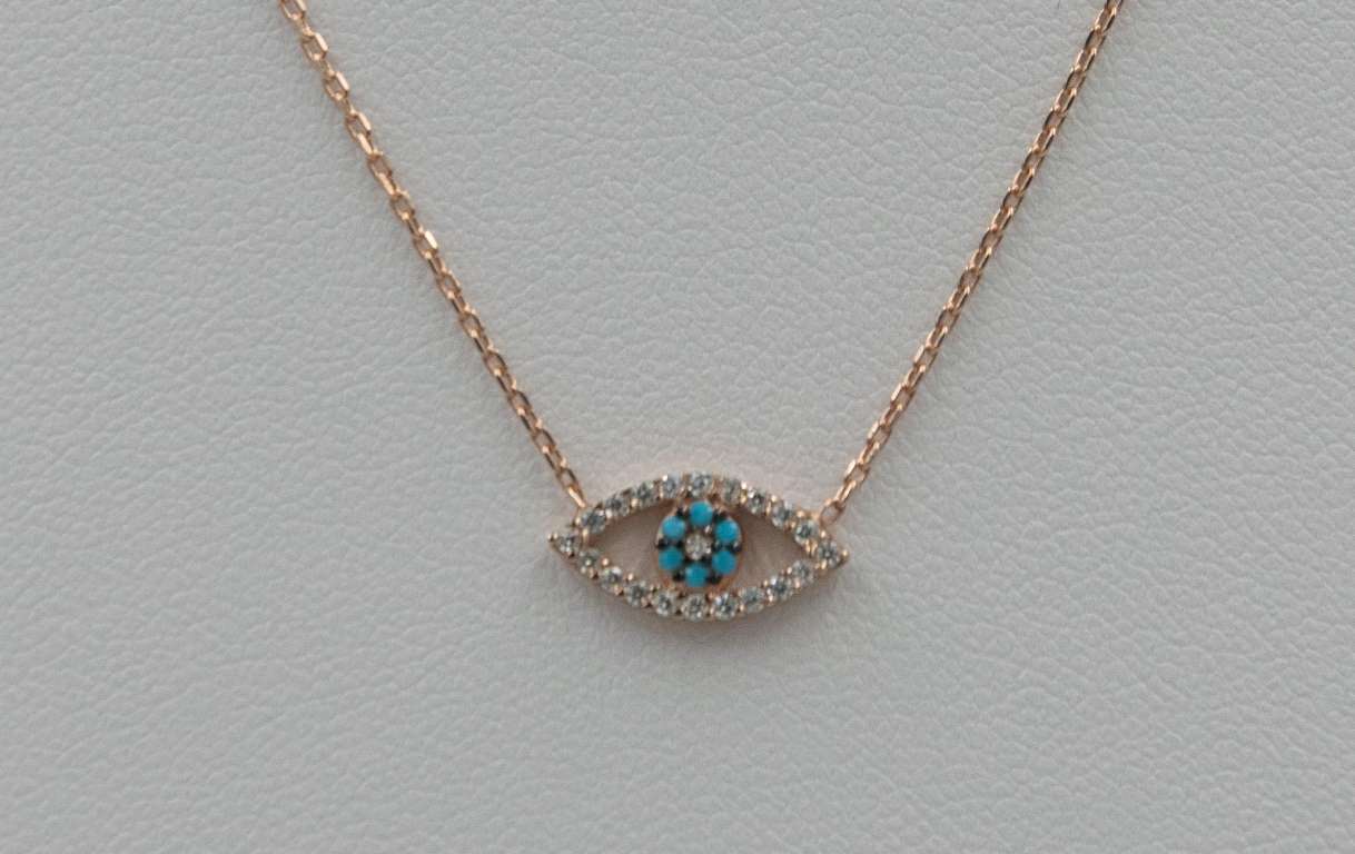 Chain necklace with integrated zircon eye element.