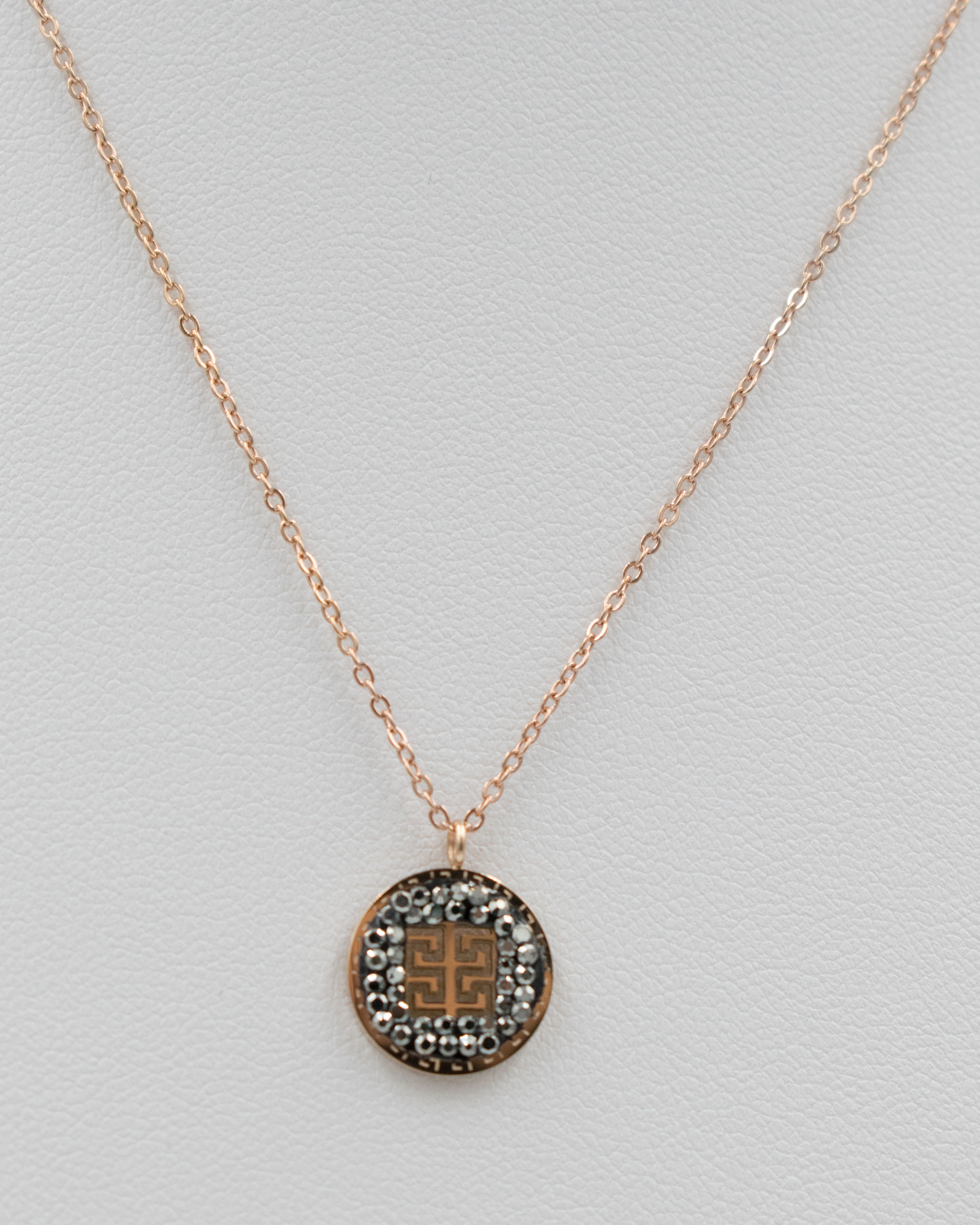 Γυναικείο κολιέ με αλυσίδα, κρεμαστό στοιχείο με ημιπολύτιμες πέτρες και σχέδιο μαίανδρο.